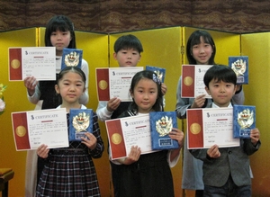 写真は上から<幼児・小学生の部>年長~小学2年生グループ、小学3・4年生グループ、小学5・6年生グループ <中学生の部>の入賞者のみなさんです。
